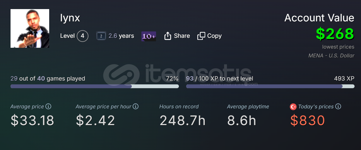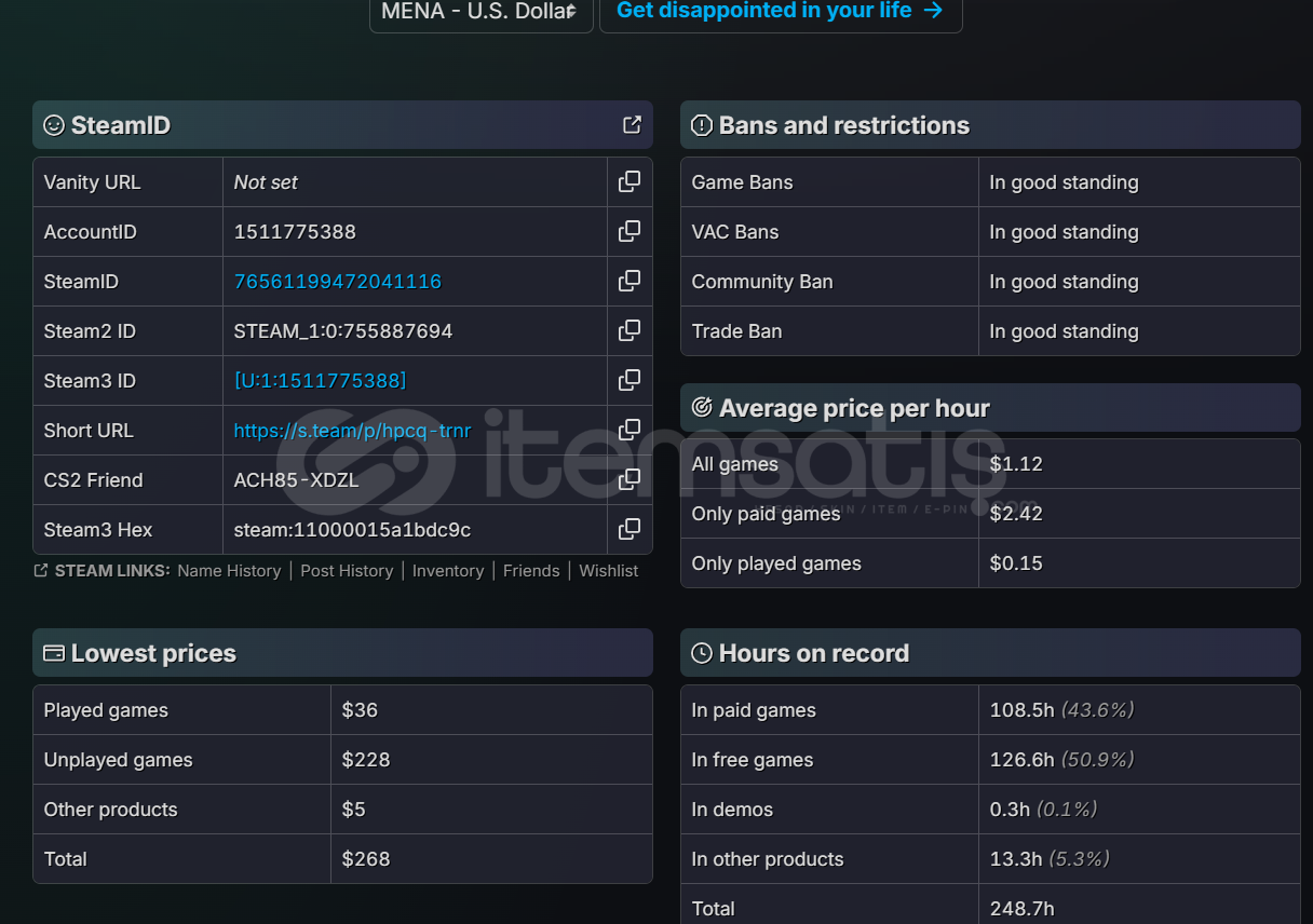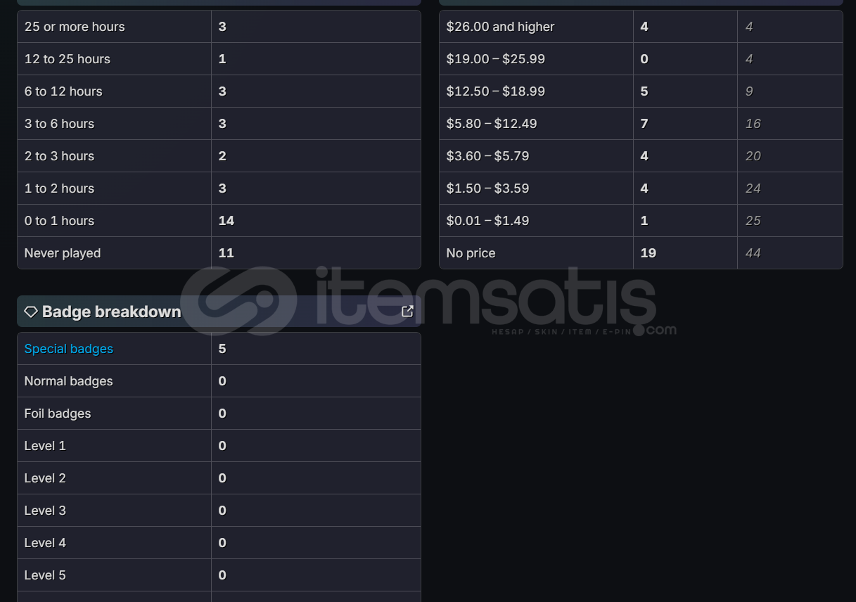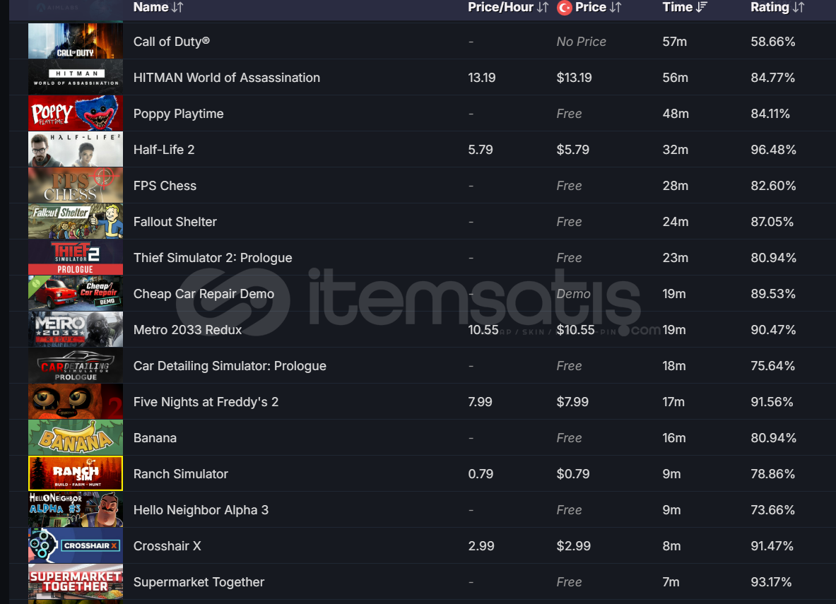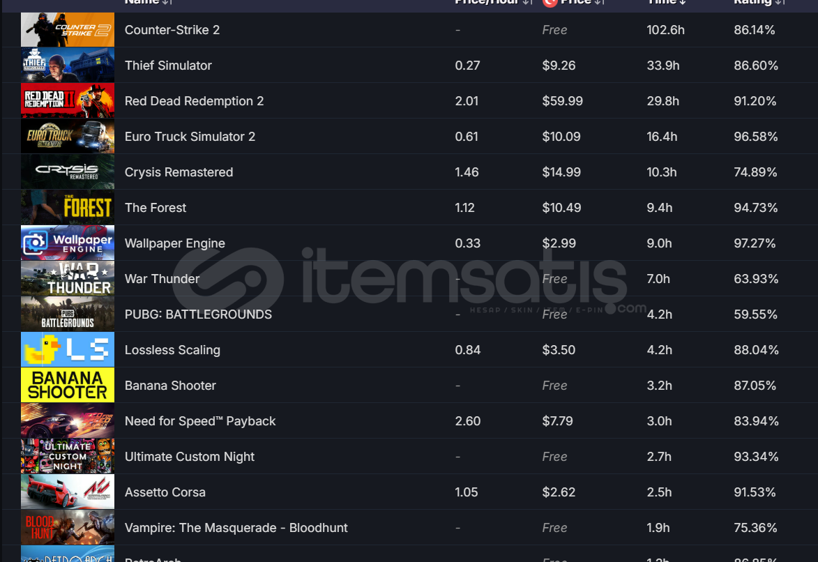 Hesap VAC ban içermez ve oyunların çoğu çok az oynanmıştır. Bilgisayarımı sattığım için artık kullanmıyorum.