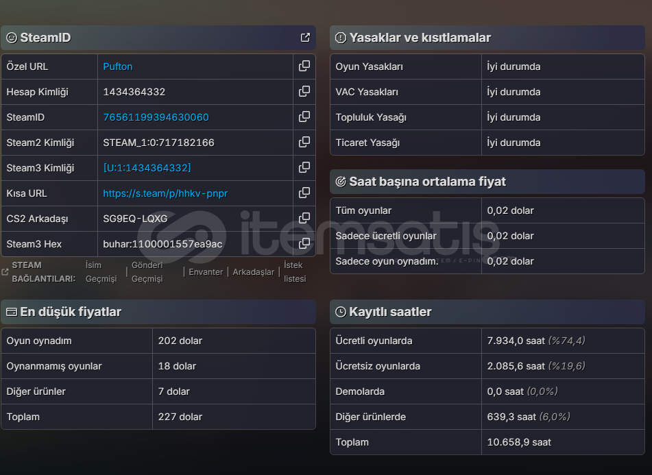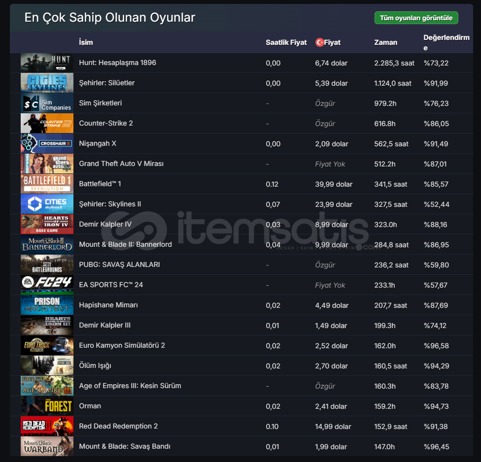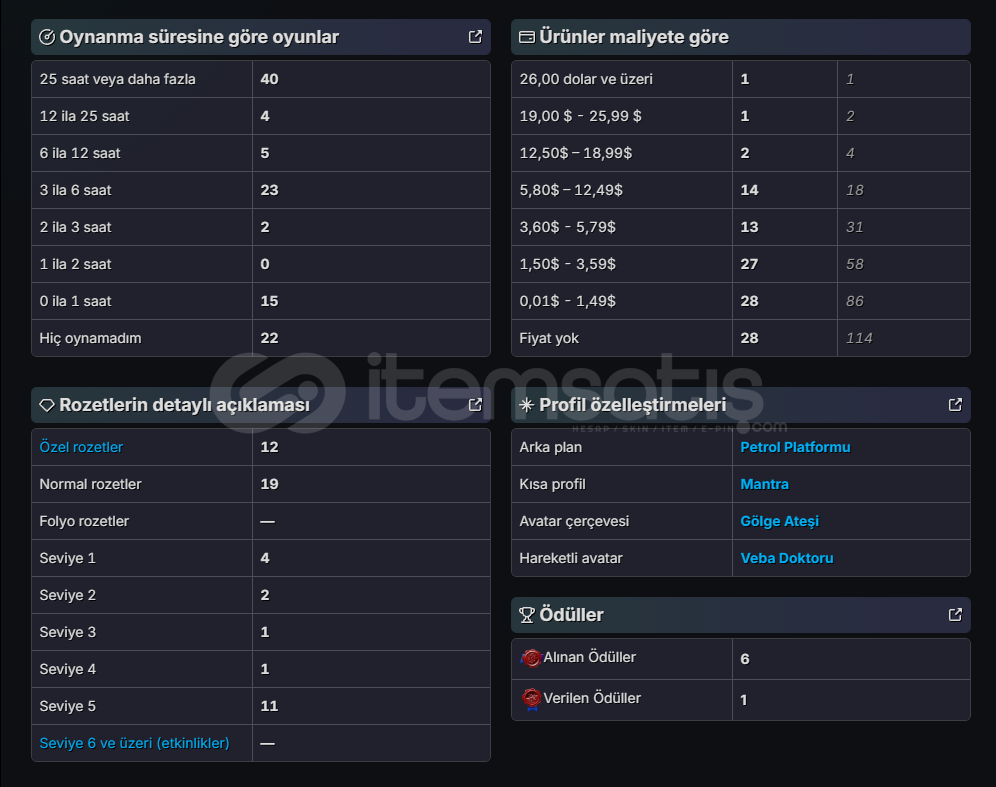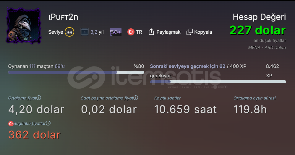 https://steamcommunity.com/id/Pufton Detayları inceleyebilirsiniz. Hunt Showndown 100Prestij 100Sv. 1.39KDA Mevcut. Pazarlık Olur Dm Yazabilirsiniz. Hesaptaki TR Oyun Fiyatları 362Dolar etmekte en indirimli haliyle. hesapta hiçbir ban vs. yoktur Hunt Showndown Oyununda 53adet DLC Mevcuttur