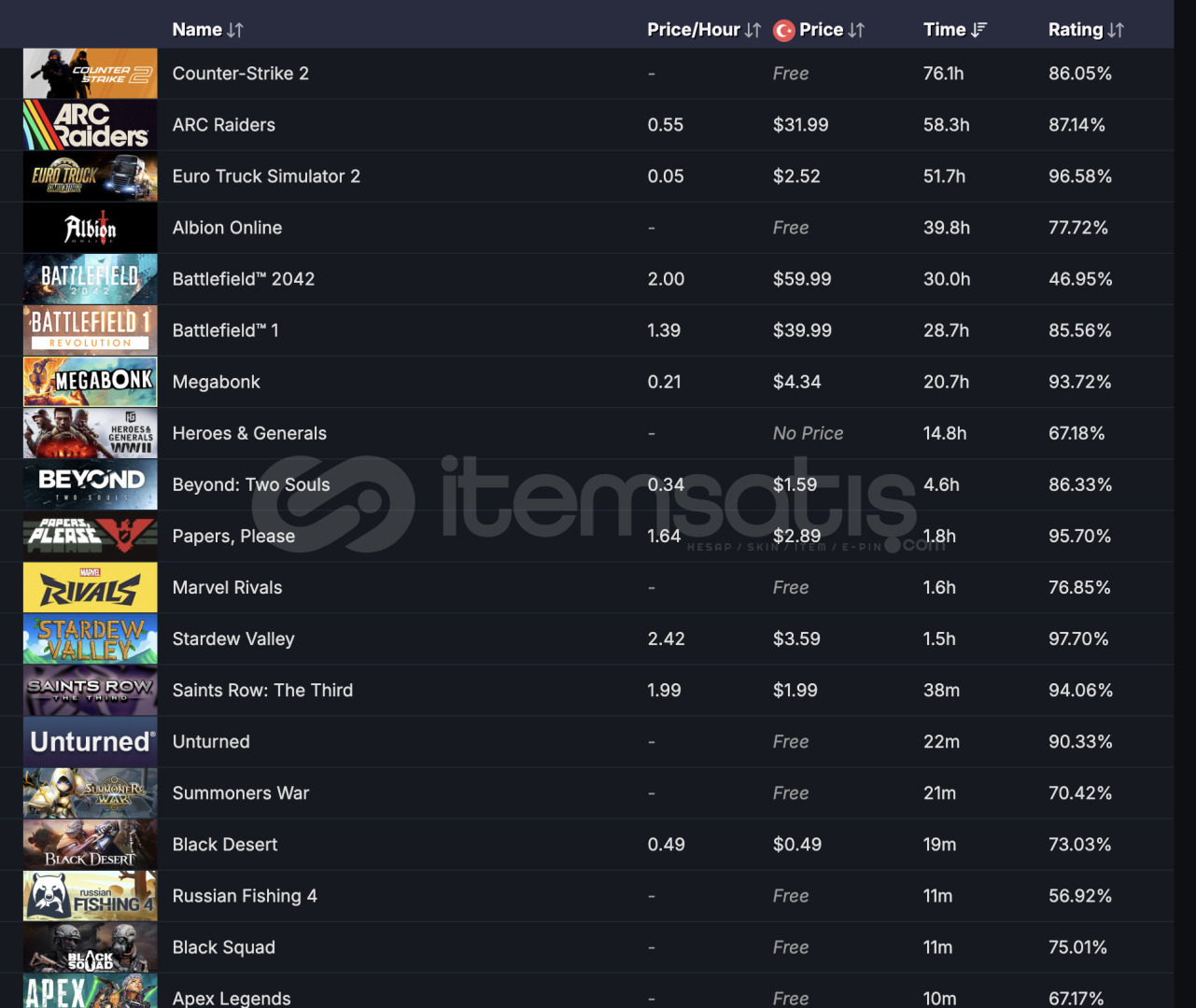 Counter-Strike 2 - SeçkinARC RaidersEuro Truck Simulator 2Albion OnlineBattlefield™ 2042Battlefield™ 1MegabonkHeroes & GeneralsBeyond: Two SoulsPapers, PleaseMarvel RivalsStardew ValleySaints Row: The ThirdUnturnedSummoners WarBlack DesertRussian Fishing 4Black SquadApex LegendsDisco ElysiumSaints Row 2Caribbean CrashersUniverse For SaleField of Glory II: MedievalFantasy General IIBattlestar Galactica DeadlockBlack Mesa