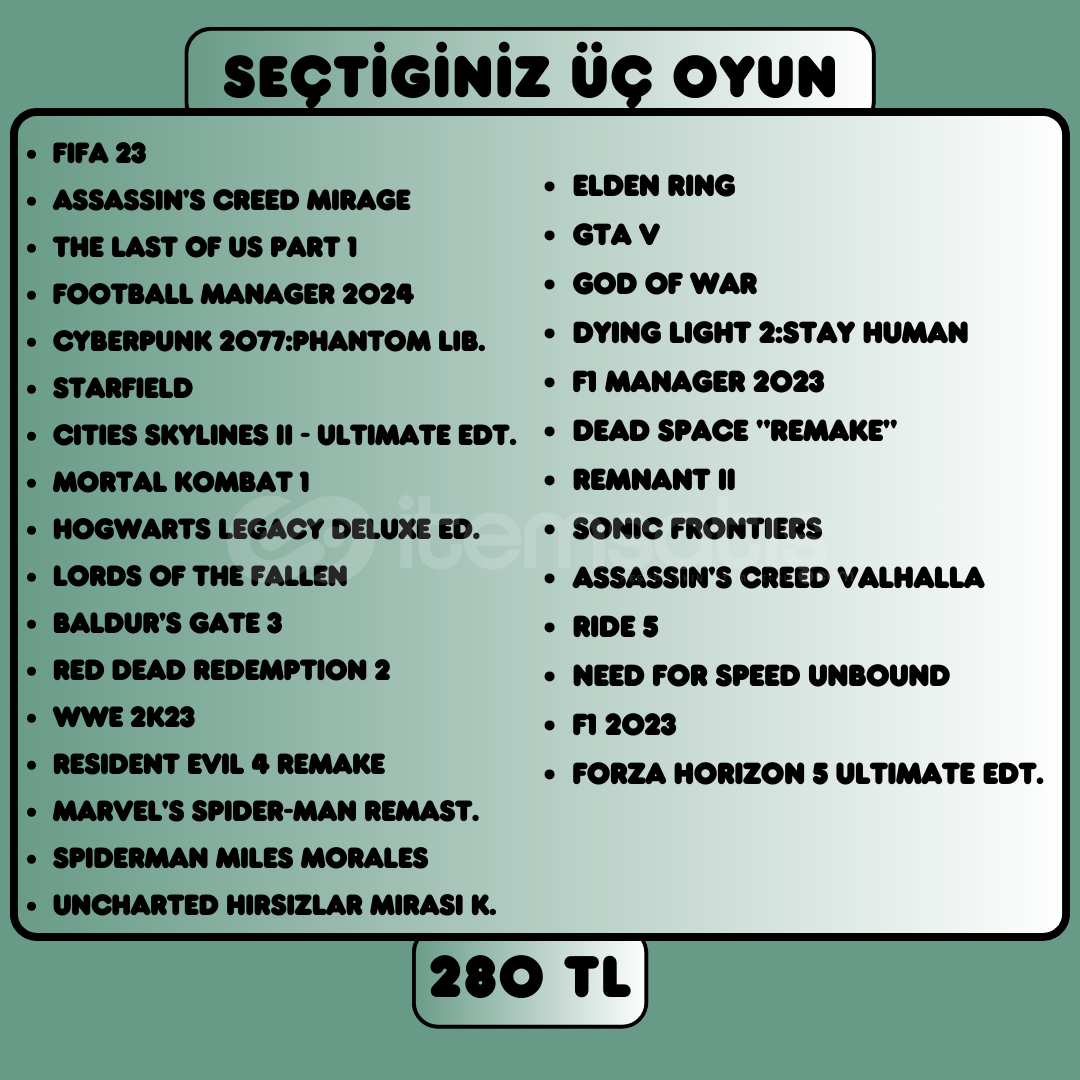 İSTEĞE BAĞLI 3 ADET AAA OYUNLAR