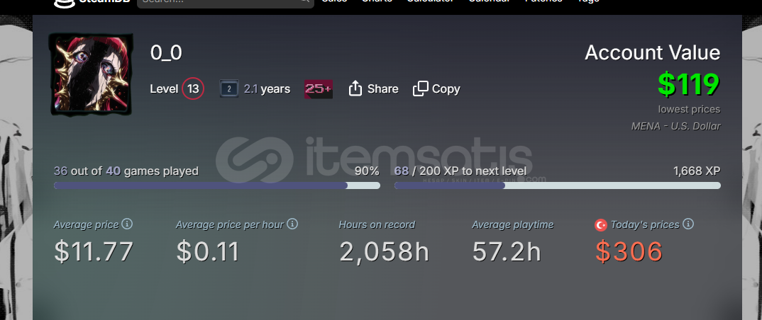 2000+ saat oyun süresi, VAC yok, trade ban yok.