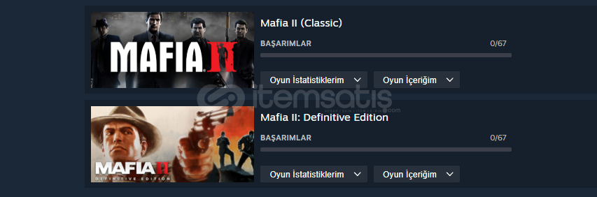 hesapta Mafia II (Classic) ve Mafia II: Definitive Edition hic oynanmadı hesap tamamen bana ait