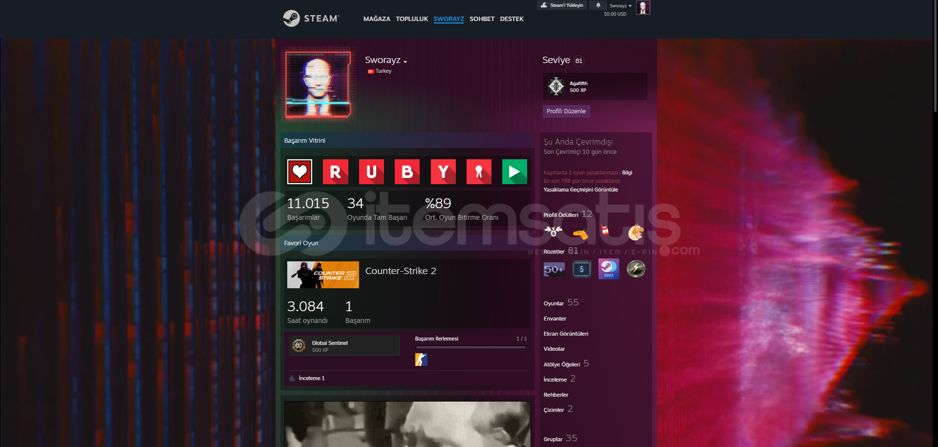 İÇİNDE 400 DOLARA YAKIN OYUN MEVCUT CS2 DE VAC BAN MEVCUT YAKLAŞIK 2 YIL OLDU VE SONRA OYUN OYNAMAYI BIRAKTIM