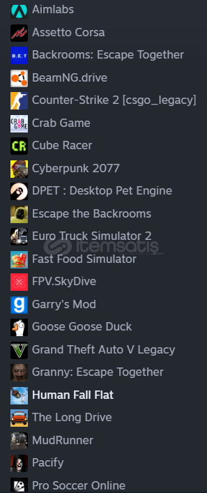 OYUNLAR ORJİNALDİR ONLİNE OYNANIRÖNEMLİ!!!!! HESABA GİRİŞ E-POSTA İLE OLACAKTIR DİREK E-POSTANIN ŞİFRESİ SİZE VERİLİR E-POSTA SİZE TESLİM EDİLİRHesaptaki Ücretli Oyunlar Şunlardır:Assetto Corsa, Backrooms Escape Together, BeamNG.drive, Cyberpunk 2077, Escape The Backrooms, Euro Truck Simulatör, Garry's Mod, Grand Theft Auto V Legacy, Granny Escape Together, Human Fall Flat, The...