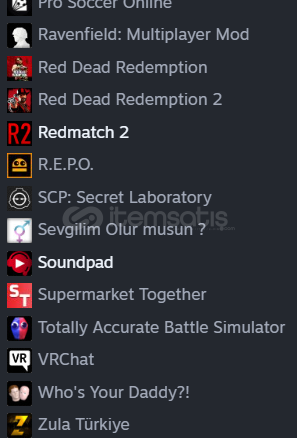 Assetto Corsa, Backrooms Escape Together, BeamNG.drive, Cyberpunk 2077, Escape The Backrooms, Euro Truck Simulatör, Garry's Mod, Grand Theft Auto V Legacy, Granny Escape Together, Human Fall Flat, The Long Drive, Mudrunner, Rdr 2, Rdr, R.E.P.O, Totally Accurate Battle Simulatör, Who's Your Daddy