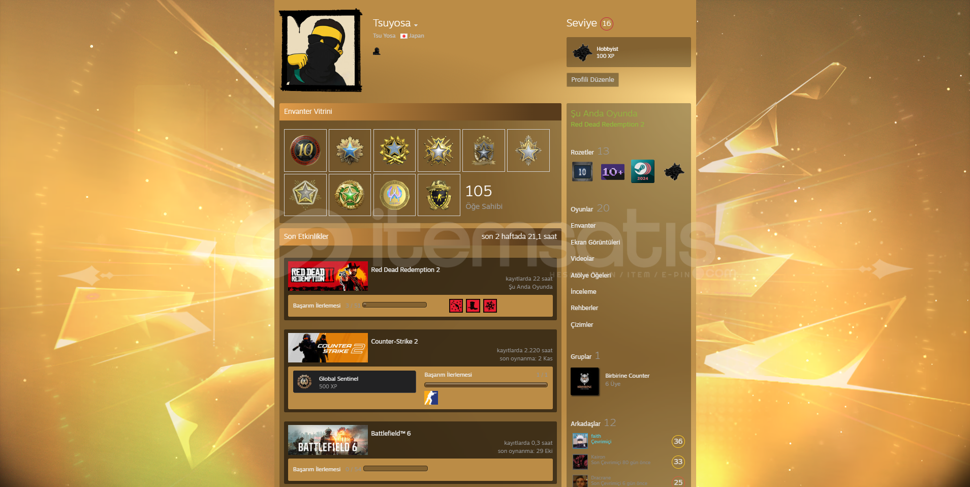 Playstation aldığım için pc ve platformlarımı satıyorum, Gta 5, Rdr2, Forest, Cyberpunk, Bf, Ac Origins vardır; 2500 saat cs vardır 10 yıllık jeton vardır ve içerisinde 80 dolar vardır.