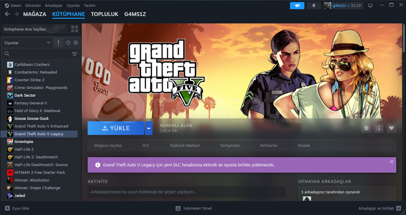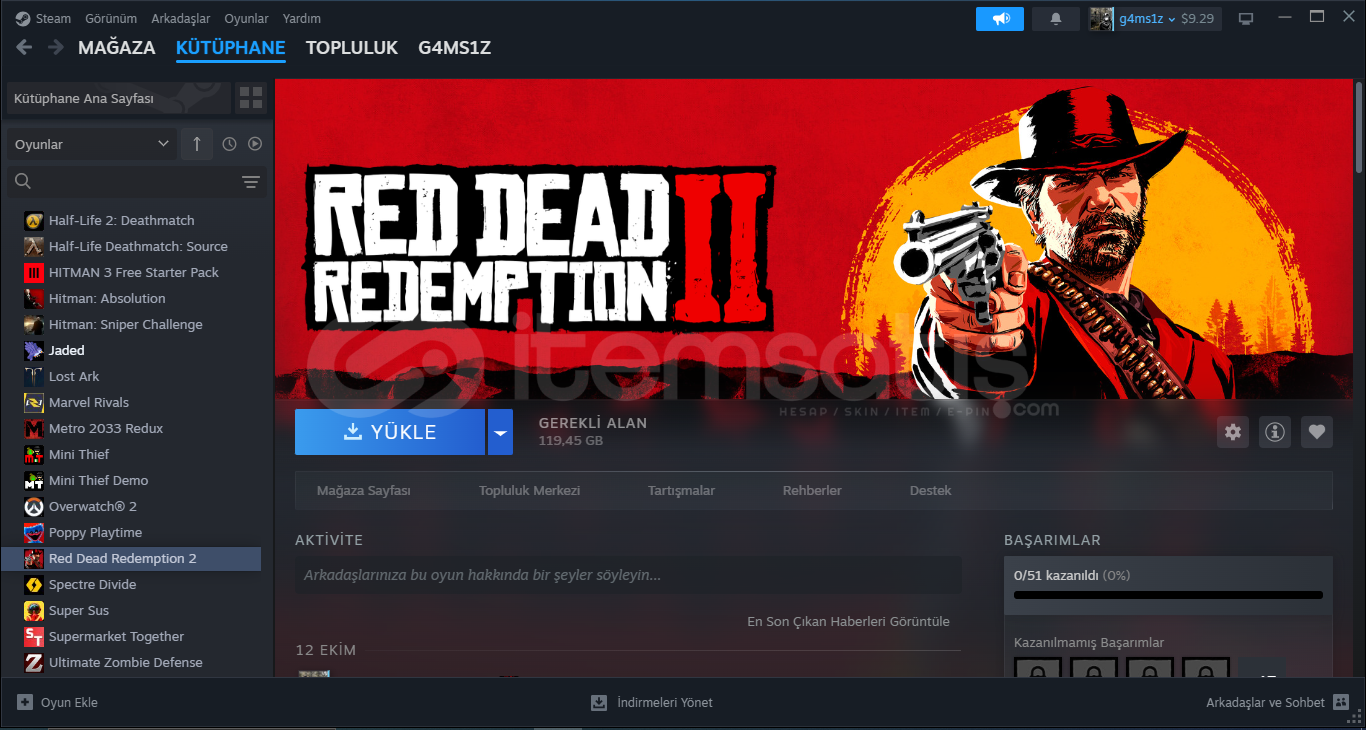 Steam hesabının içinde Red Dead Redemption 2 ve Grand Theft Auto 5 bulunmaktadır. Oyunların güncel fiyatı şuan toplam 90 dolar, yani 3.700 Türk Lira'sıdır. Daha oyunlara daha hiç girilmemiştir. RDR 2'de GTA 5'te 0 saattir.