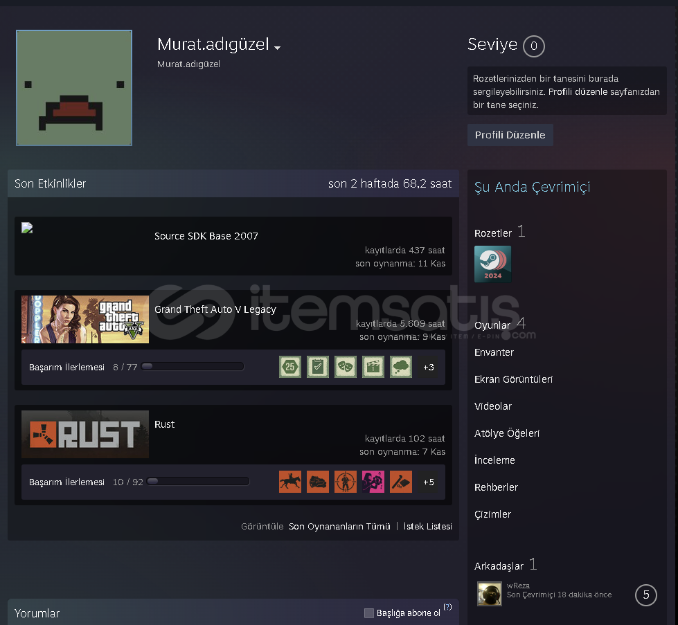 ciddi alıcalara indirim yaparımRust,GtaV, Olan Steam Hesabı gmail degişengmaili vericemiçinde rust vargta 5 var
