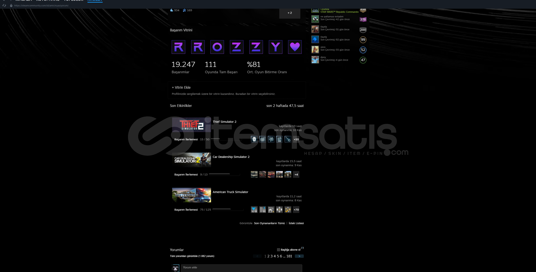 7 yıl39 seviye1081 yorumCS2 BAN166 Ücretsiz Oyun170 ücretli oyunToplam 336 oyun