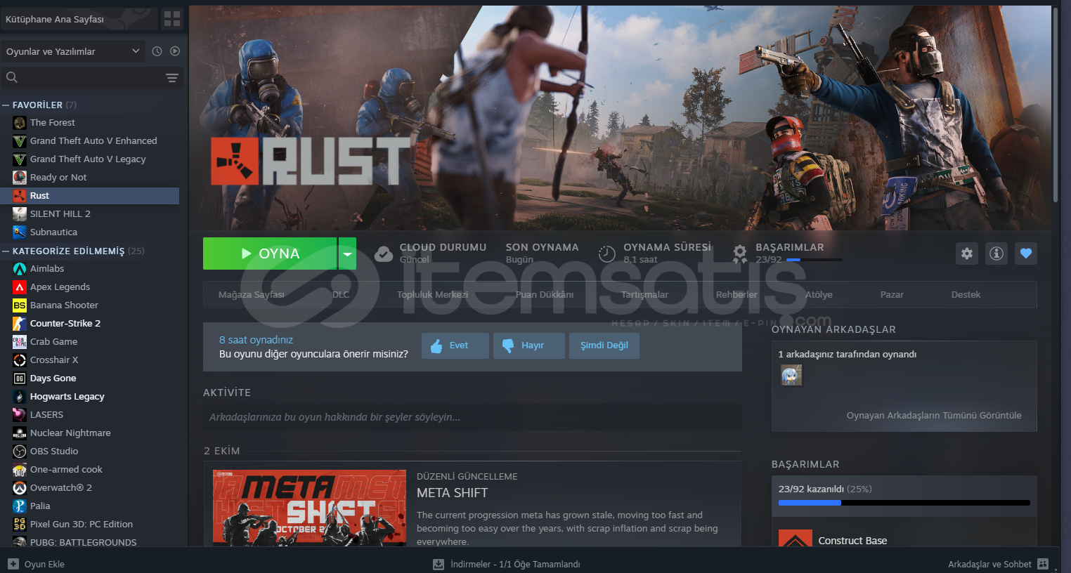 hesabın mail bilgileri tamamen değişebilir durumdadır.silent hill 2,rust,ready or not,gta 5,subnautica ve the forest mevcut.