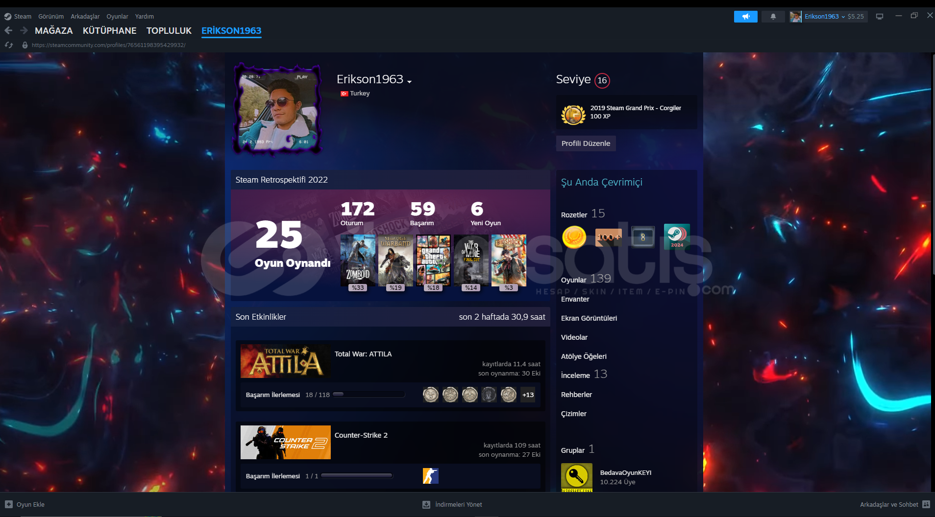 139 oyunlu yüzlerce dlc bulunan 6 yıllık hesap satılıktır