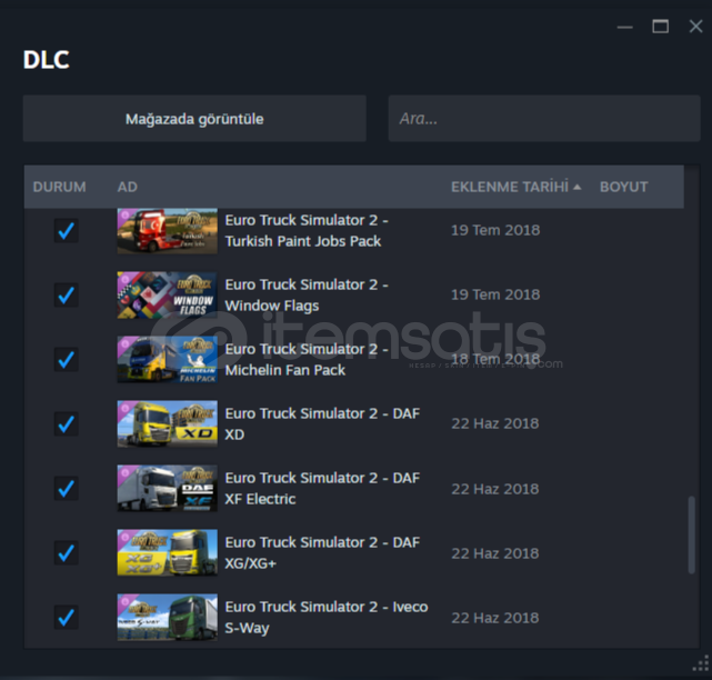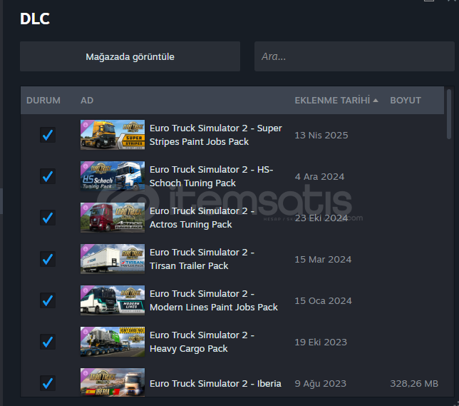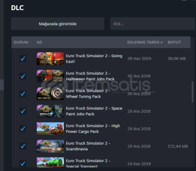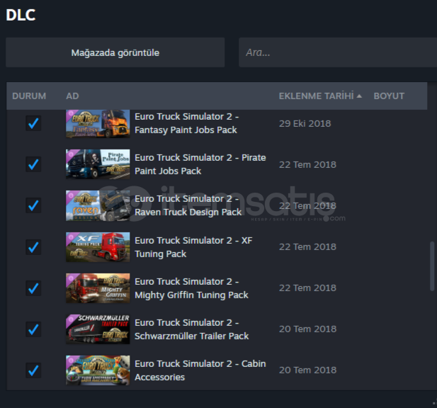 DLC'LER fazla olduğu için tek tek yazmayacağım ve ekran görüntüsünü atacağım.