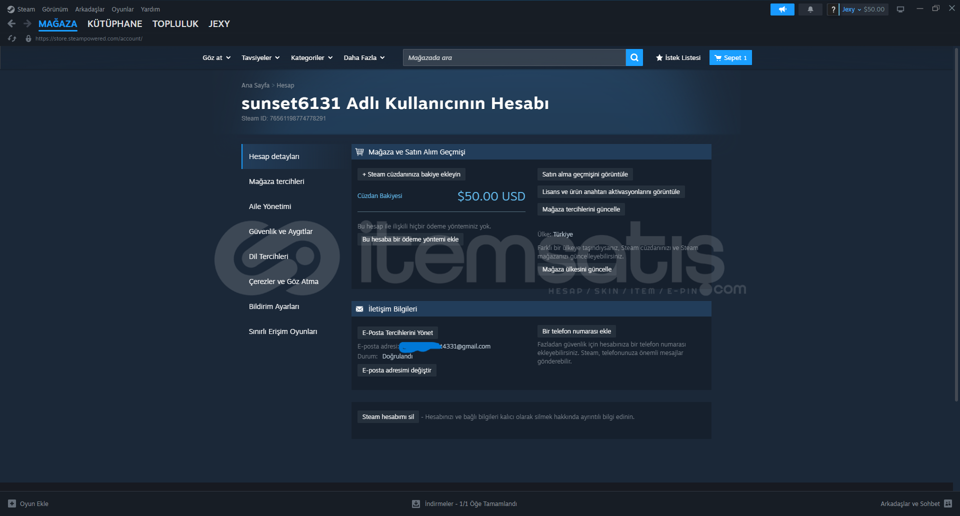 -Hesabın içinde Rust vardır.-Cüzdan bakiyesi 50 dolar.-Maili sizin istediğiniz mail ile değiştirilebilir.-Hesabın mail adresi benimdir.-Hesabı satın aldıktan sonra telefon numarası guard gibi şeyler ekleyebilirsiniz.-Sadece itemsatış üzerinden satılıyordur satın aldıktan sonra iletişime geçmeniz yeterli olur.