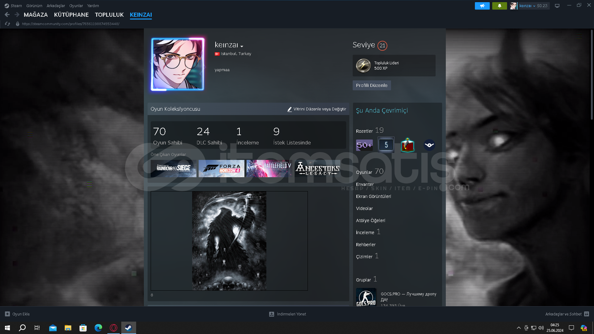 Hesapta 70 adet oyun bulunmaktadır...Counter-Strike 2 - 5 yıl deneyim rozeti vs..Forza Horizon 4PUBG: BATTLEGROUNDSEuro Truck Simulator 2Battlefield™ VTom Clancy's Rainbow Six SiegeThe ForestThis War of MineRaftAssetto Corsa