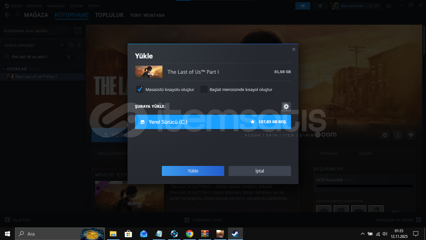 Bu ilan sayesinde The Last Of Us part 1 oyununu Steam hesabınıza ekletebilirsiniz. İşlem özel bir 3. parti yazılım ile yapılmaktadır fakat tamamen güvenlidir ve hesabınıza hiçbir zarar vermez.