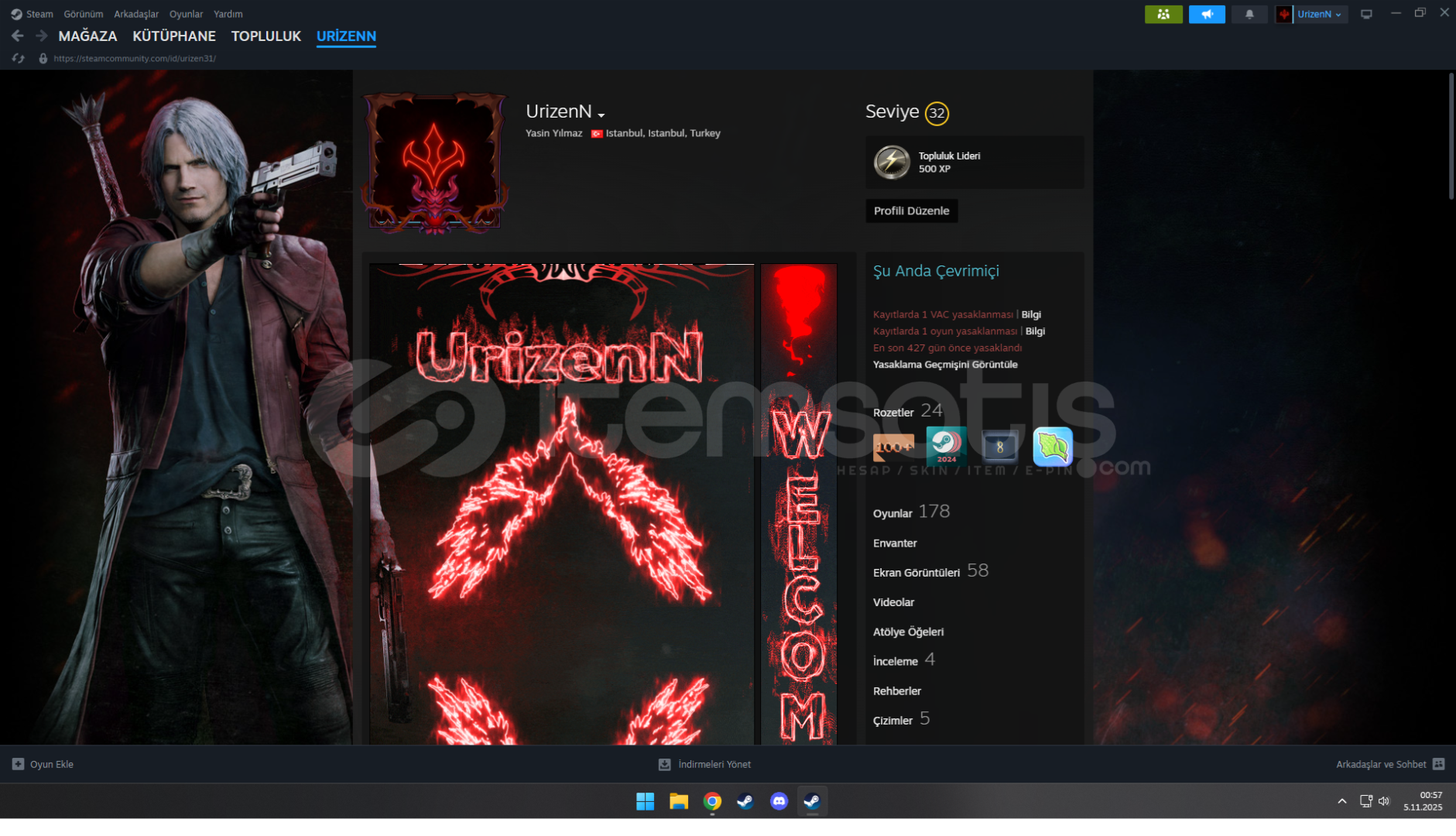 Paraya ihtiyacım olduğundan ucuza satıyorum hesabın 1. sahibiyim bütün istediğiniz doğrulamaları yapabiliriz hesabı bütün bilgileriyle mail değişikliği ile teslim edilicektir.https://steamcommunity.com/id/urizen31/