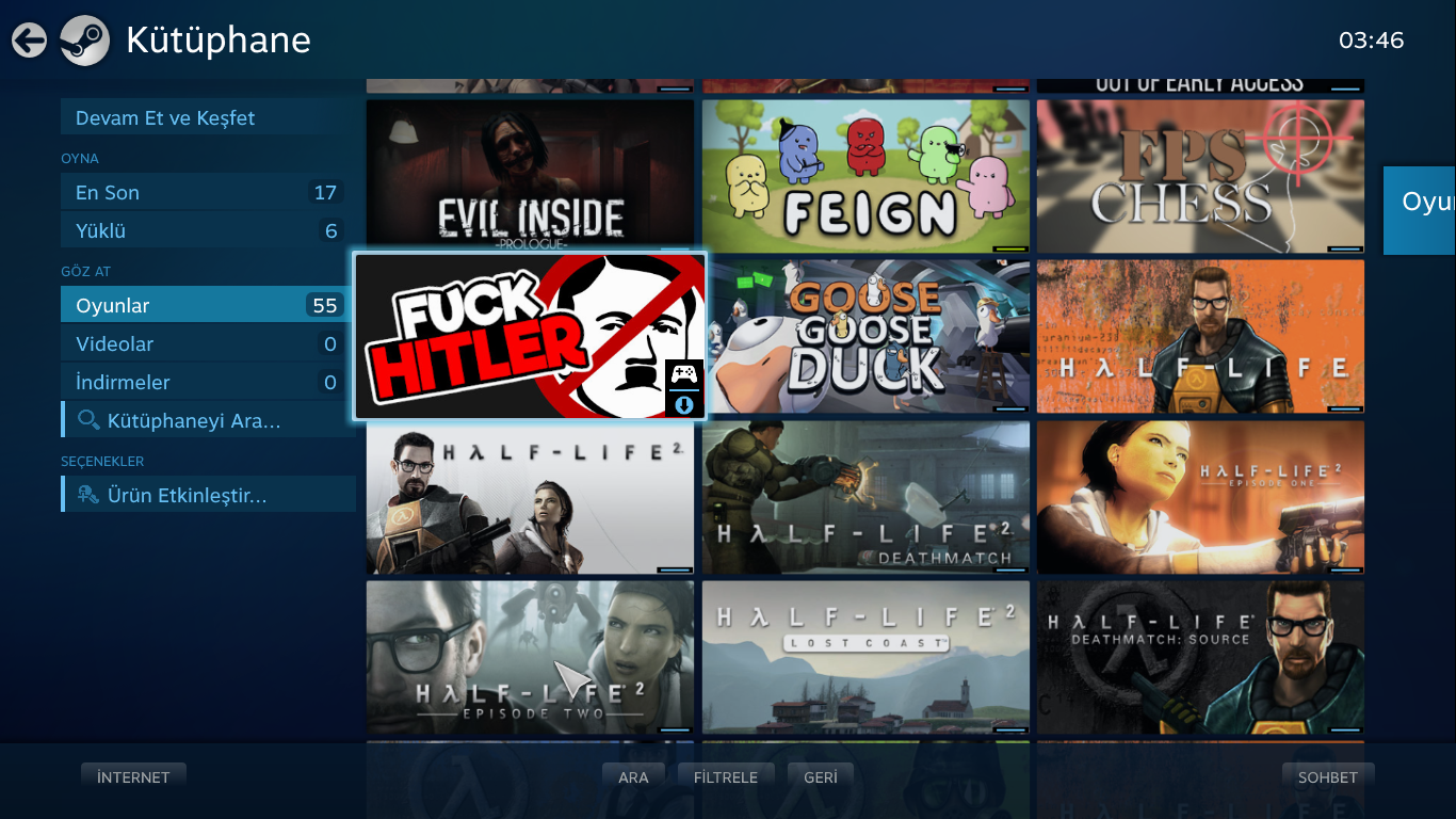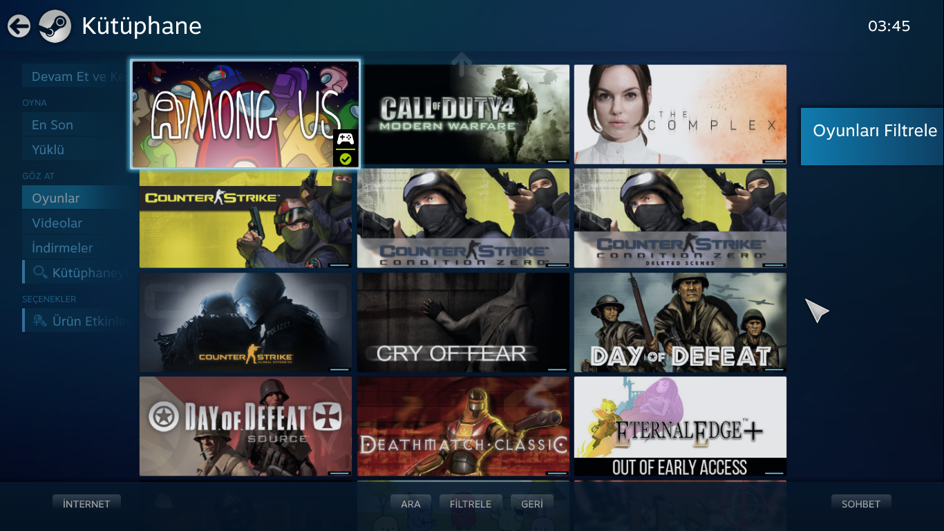 Hesaptaki paralı oyunlar: AMONG US-CALL OF DUTY 4-THE COMPLEX-VALVE ŞİRKETİNİN TÜM OYUNLARI(COUNTER STRİKE SERİSİ-HALF LİFE SERİSİ-LEFT 4 DEAD SERİSİ-PORTAL SERİSİ-DAY OF DEFEAT SERİSİ-DEATH MACH CLASSIC)-FEİGN-HİTMAN:ABSOLUTION-HUMAN:FALL FLAT-LİTTLE NIGHTMARES 1-LİTTLE NİGTMARES 2-PACIFY-PAPERS,PLEASE-STİCK FİGHT:THE GAME-THE HUNTER-WITCH IT VE EKRAN GÖRÜNT&Uum...