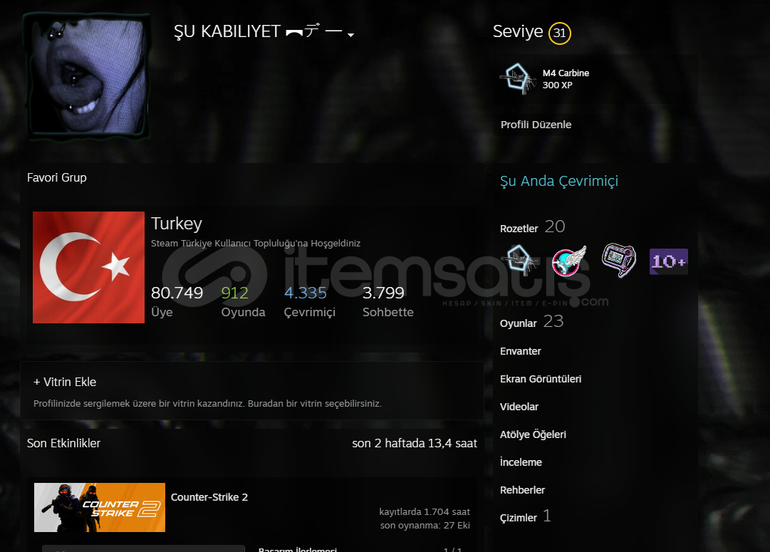23 TANE GÜZEL VE PAHALI OYUN VARDIR 31 LEVEL OLMUŞTUR HESAPCS 2 DE SEÇKİNİ VARDIR GTA5 FİVEM BİRÇOK SERVERDA SAĞLAMDIR• https://steamcommunity.com/id/erodarling/