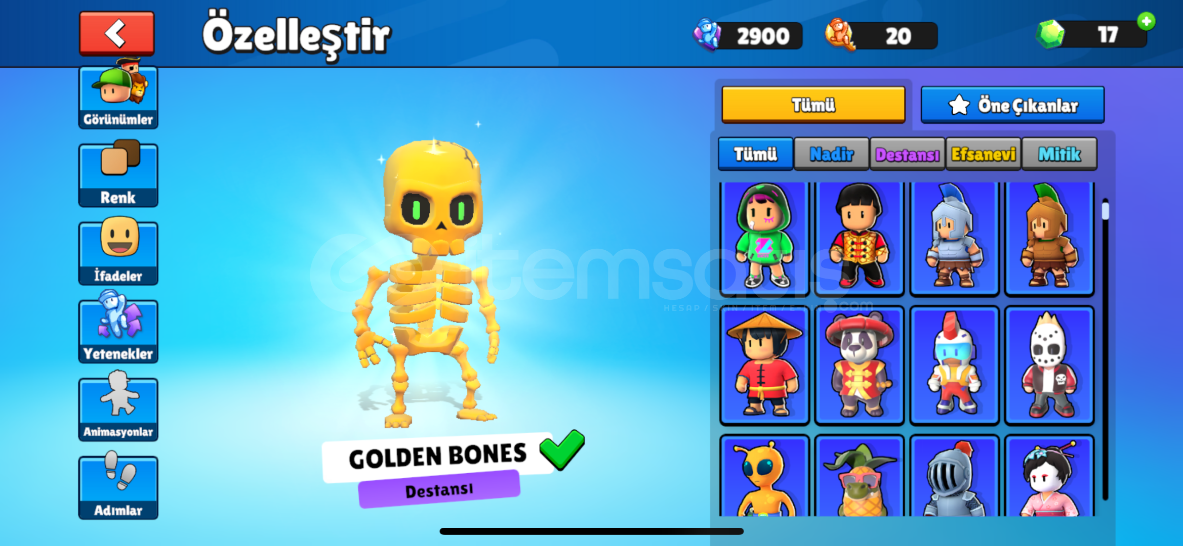Hesaptaki değerli skinler demir samuray altın iskelet vs. Şanslı hesaptır gayet dolu orta seviye hesaplarımızdan birisidir bu fiyata bulunmaz