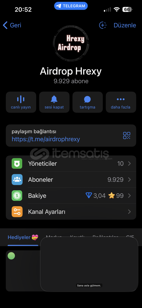 Görüntülenme veya üye alışlarınızda yazacağınız kanal bağlantınızı kontrol ederek siparişi tamamlayınız. Aksi taktirde oluşabilecek sorunlarda tüm sorumluluk sizlere aittir.