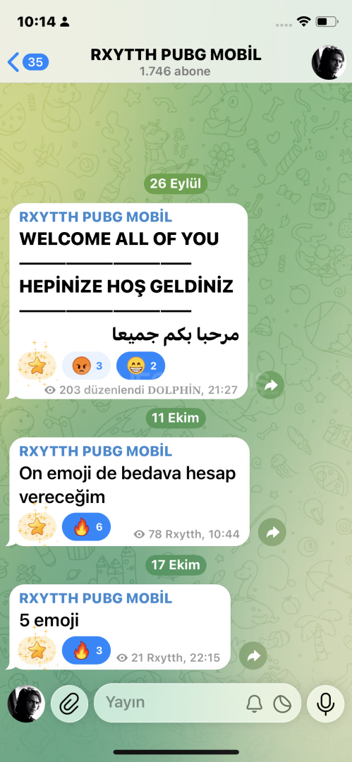 pubg hesap kanalardır bot basılmamiştir görüntüleme 100-200 arasi almaktadır