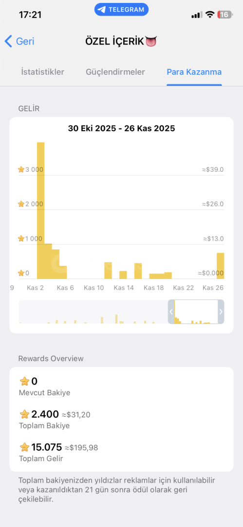 Kadın telegramıdır Hesap değil grup devredilecek31.20 dolar bakiyesi mevcut (1320 tl)toplamda kısa sürede 200 dolar kazandırdıdaha önce çokça çekim yapılmış kanaldır alan kişi aktif olursa geliri kat kat üstüne çıkartabilirhepsi gerçek erkek takipçilerdir