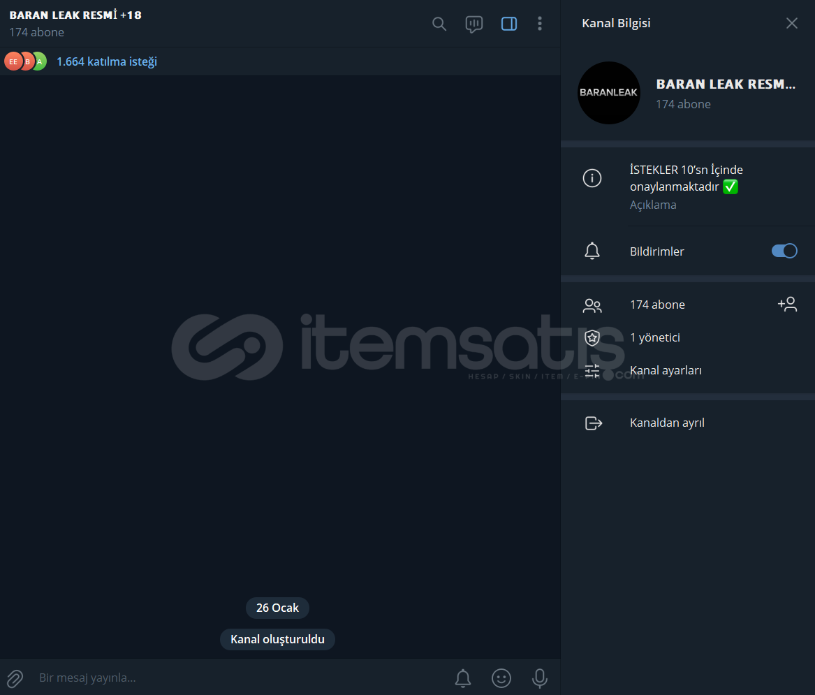 Telegram kanalı İNSTAGRAM hesabı üzerinden kasılmıştır. Taze kitledir. Elimdeki kalan son kanaldır. Piyasaya göre uygundan verilecektir. Telegram @Sekizz19