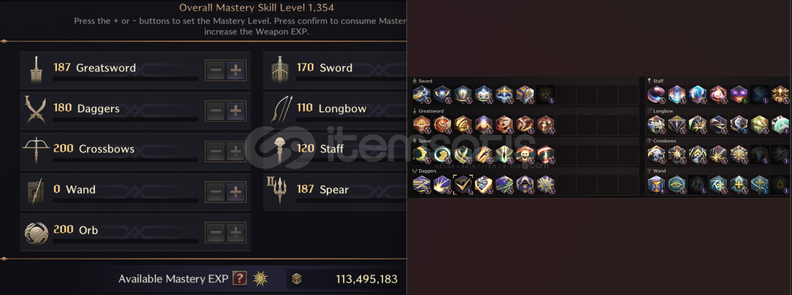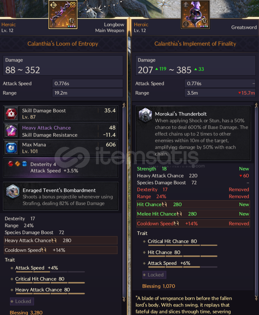 Heroic Lvl 12 Longbow-Engared Tevent bombardmentHeroic lvl 12 GS-Morokai ThunderboltHeroic Orb-SnsHeroic Cloak lvl 12Heroic Ring lvl 12Deluzhnoa Spear - Longbow - Dagger - SNSTevent GSQueen xbow - Spear - StaffEvasion ve enduruance full setler mevcut..Detay için sorabilirsiniz.Fallen set Bloodhunter set Yeni secret order set 3 parça ve tek tek olan diğerleri gibi...Güncel olarak oyuna girdiğim için değişikler olabilir almaya karar verirseniz önc...