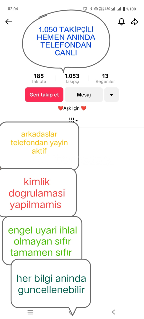 1.049 TAKİPÇİLİ HEMEN ANINDA TELEFONDAN CANLI