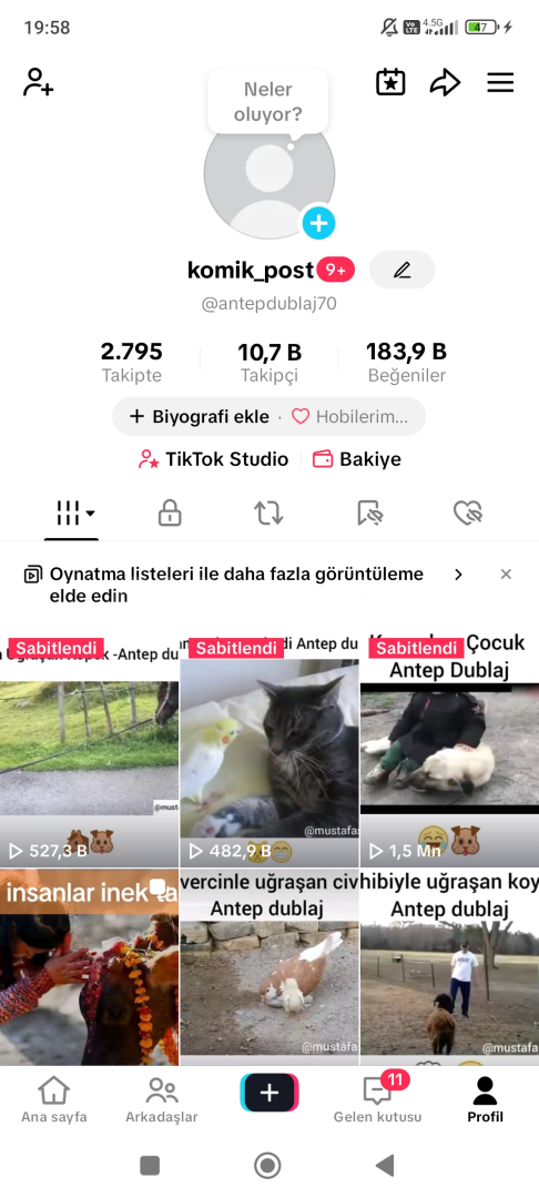 *ilanıma hoşgeldiniz otomatik teslimat ✅ 10.700 takipçili 183.9 beyeni hepsi organik bot takipçi kesinlikle yoktur hiç bir ihlal yok tertemiz hesab videoların hepsi keşfette hesab bölgesi türkiyedir alan kişi kullanıcı adı, şifre, maille giriş yapabilecek alan kişiye Hayırlı olsun profilimden başka hesablara bakabilirsiniz ✨ NOT: PAZARLIK YAPILIR