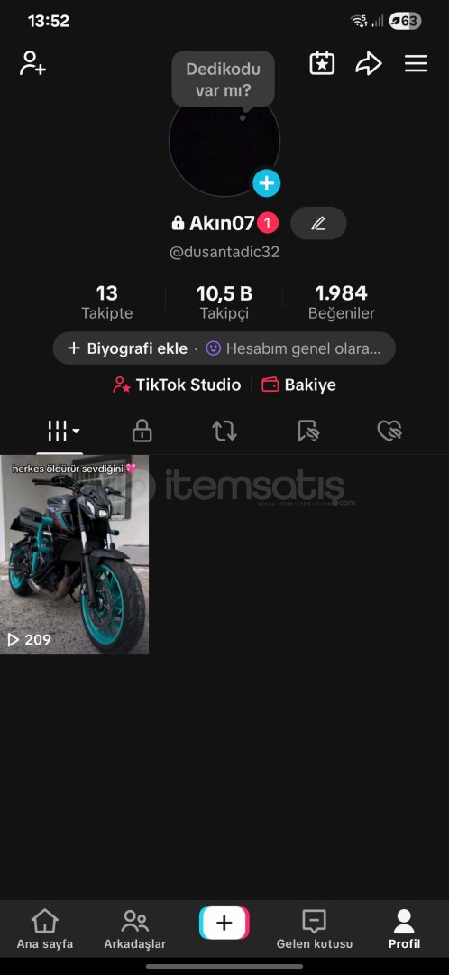 Öncelikle merhabalar takipçilerin hepsi bot değildir.Keşfete düşme garantildir attığım herhangi bir video hemen düşüyorİçinde 260tlik bakiyr vardır.Herkese iyi satışar dilerim :)