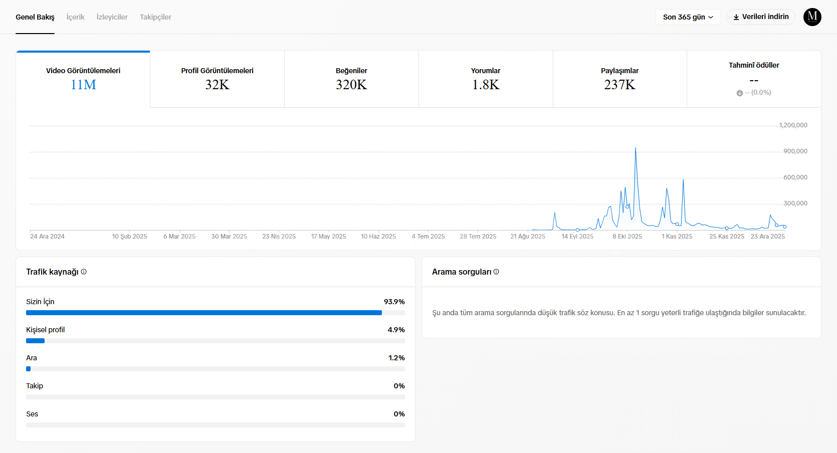 Satışa sunduğum TikTok hesabı aktif, keşfi açık ve yüksek etkileşimlidir.