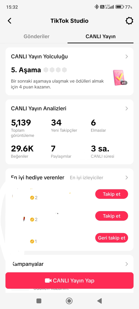 13,6 k takipçi abonelik,canlı yayın,livestudio