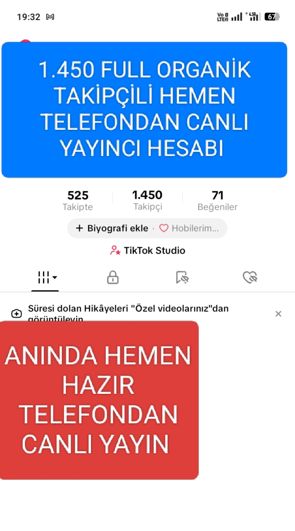 selamunaleykum arkadaşlar hesap tertemizdir kesinlikle uyari ihlal almamis kimlik dogrulamasi yapilmamis tiktok hesabim uygun fiyatiyla sizlerle yetisen alirbu hesabimizda live sutudyo aktif değildir sadece telefondan canli yayin ve mobil oyun aktiftir ...HESAPLARIN HEPSİ TÜRKİYE KONUMLUDUR her gun öğle 12.00 ile gece 04.00 saatleri arasinda aktifiz. Siz site üzerinden mesaj gönderdiğinizde bana bildirim gelmiyor ama satın alırsan&...