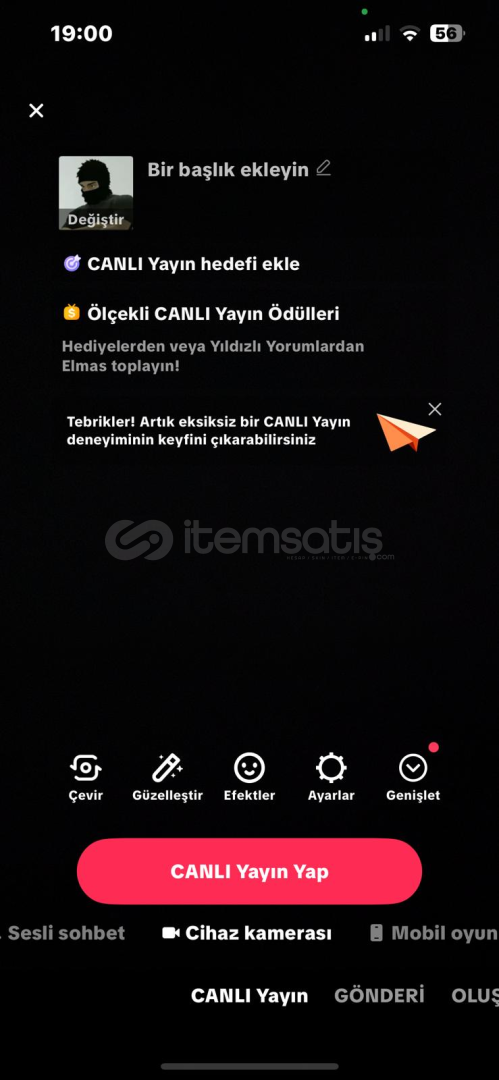 • hesapta canlı yayın açılıyor.