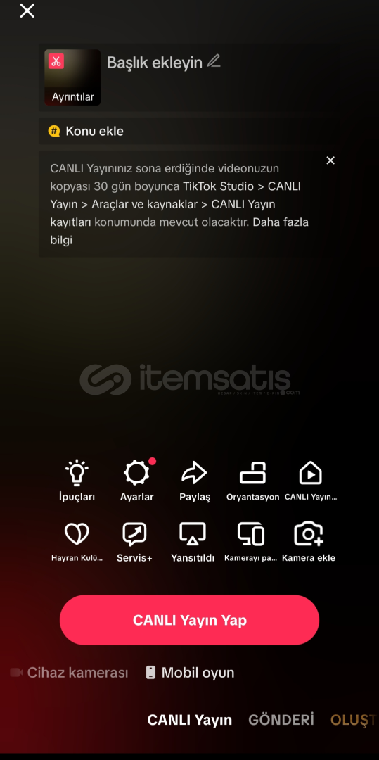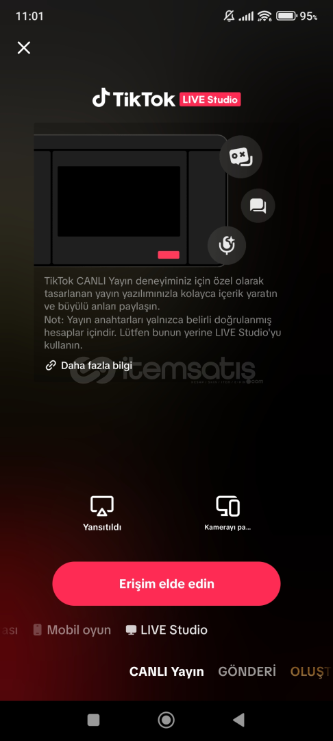 🎥Canlı yayın: cihaz kamerası, mobil oyun, live studio açık