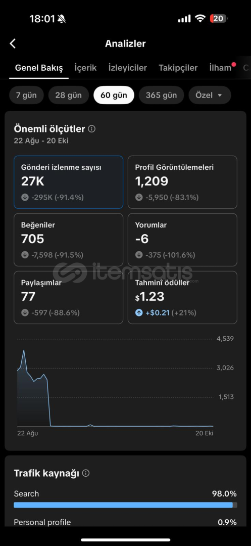✅ 172K FULL AKTİF KEŞFET AÇIK TİKTOK HESABI ✅Hesap sürekli keşfette günlük 500-700 arası takipçi geliyor . Hesabı satın aldığınızda dilediginiz içeriğe dönüştürüp kullanabilirsiniz. Mail adresi ve telefon değişebiliyor.. Direkt olarak satın alabilirsiniz teslimat sağlıyorum ..2.8 Toplam Beğeni ✅Live St&uu...