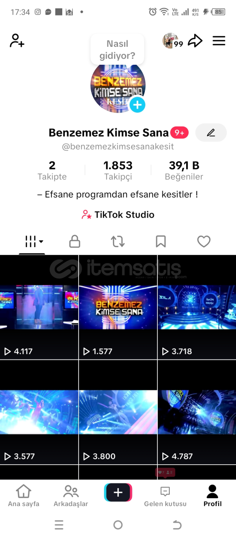 1800 takipçili aktif Tiktok hesabı