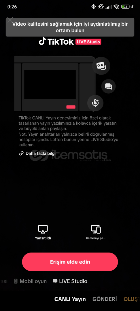 📺 Canlı Yayın, Mobil Oyun, TikTok Stüdyo,Live stüdyo Açık