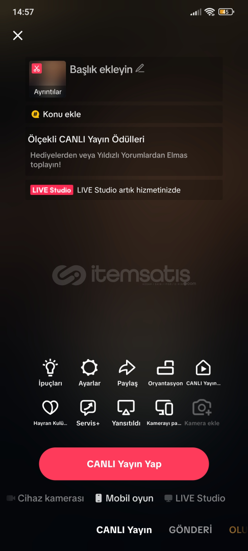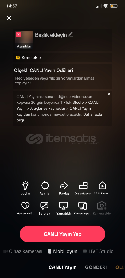 🎥 Canlı Yayın, Mobil Oyun, TikTok Stüdyo, Live stüdyo Açık: