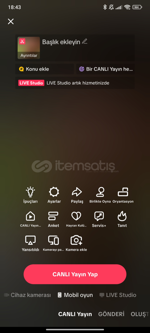 🎥Canlı Yayın, Mobil Oyun, Live Stüdyo, TikTok Stüdyo Açık: ➡️ Tam erişimli profesyonel yayın hesabı.