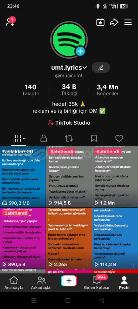 🎵 Niş: Müzik / Lyrics👤 Takipçi: 34.000❤️ Toplam Beğeni: 3,4 Milyon📊 Son 28 Gün Performansı:👀 12 Milyon izlenme👤 58.000 profil görüntüleme❤️ 404.000 beğeni💬 768 yorum🔁 11.000 paylaşım📈 Hesap organik, aktif ve düzenli içerik üretilmiştir.🎯 Reklam, iş birliği, müzik tanıtımı ve sayfa b&uu...