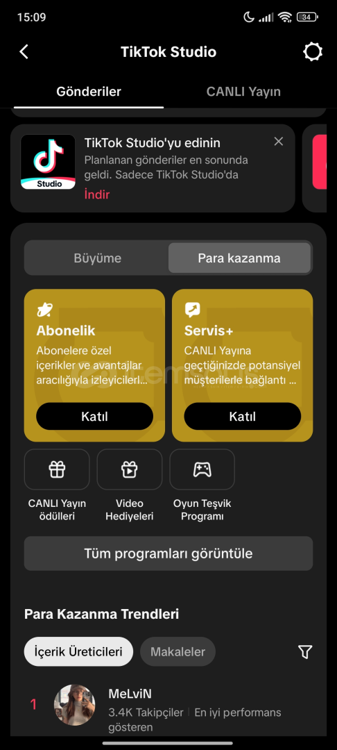 🎥 Canlı Yayın, Mobil Oyun, TikTok Stüdyo, Abonelik Açık: