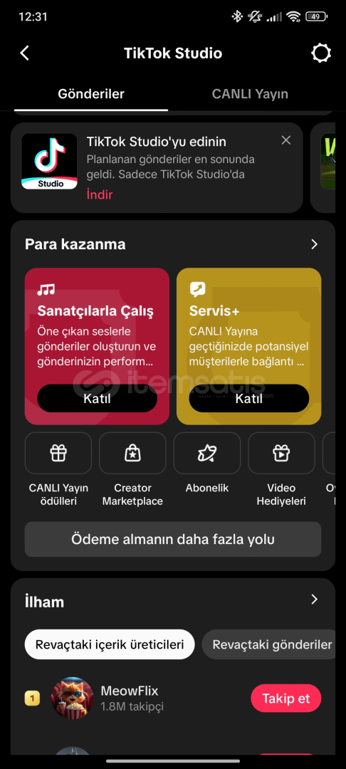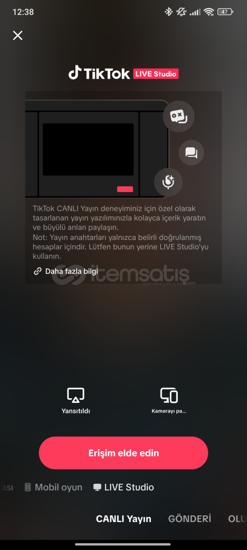 🎥 Canlı Yayın, Mobil Oyun, Live Stüdyo, TikTok Stüdyo: