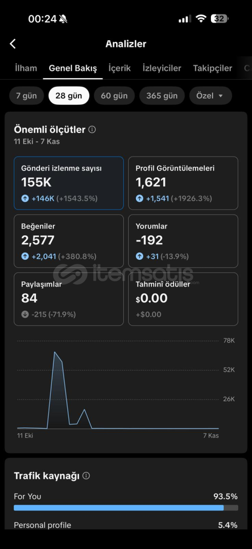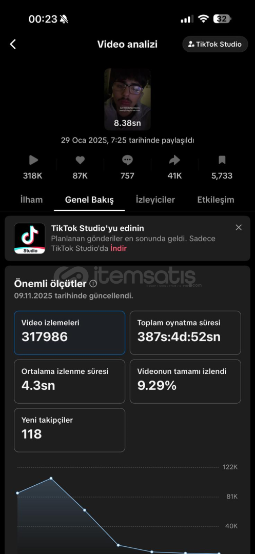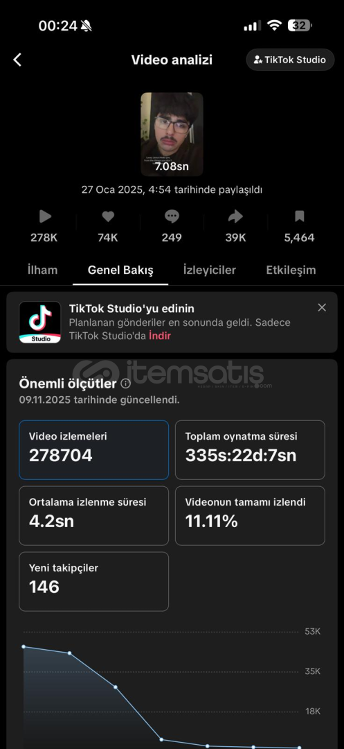 ✅ 42K FULL AKTİF KEŞFET AÇIK TİKTOK HESABI ✅Hesap sürekli keşfette günlük 500-700 arası takipçi geliyor . Hesabı satın aldığınızda dilediginiz içeriğe dönüştürüp kullanabilirsiniz. Mail adresi ve telefon değişebiliyor.. Direkt olarak satın alabilirsiniz teslimat sağlıyorum ..5.5M Toplam Beğeni ✅Live ...
