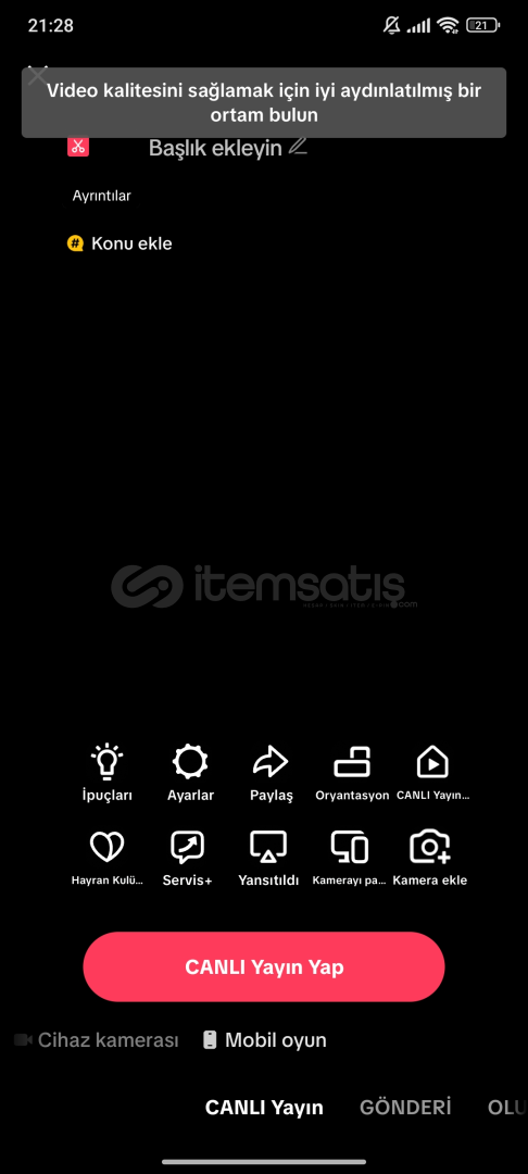 🎥 Canlı Yayın, Mobil Oyun, TikTok Stüdyo Açık: