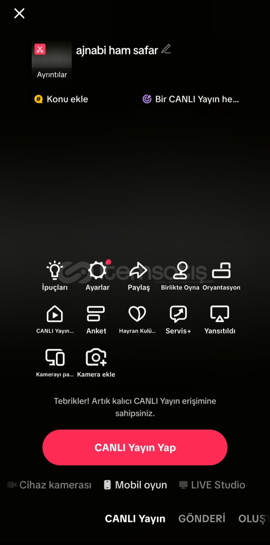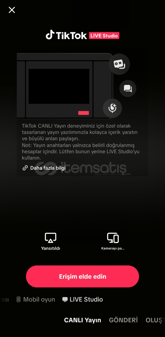 🎥Canlı yayın açık, mobil oyun açık live studio için 25dk yayın yapmanız yeterlidir.