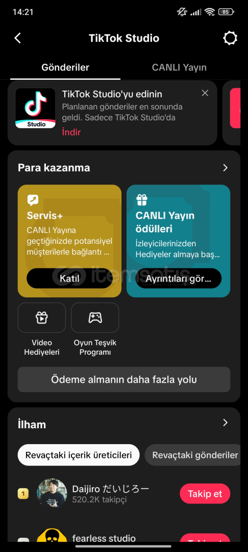 📺 Canlı Yayın, Mobil Oyun, TikTok Stüdyo