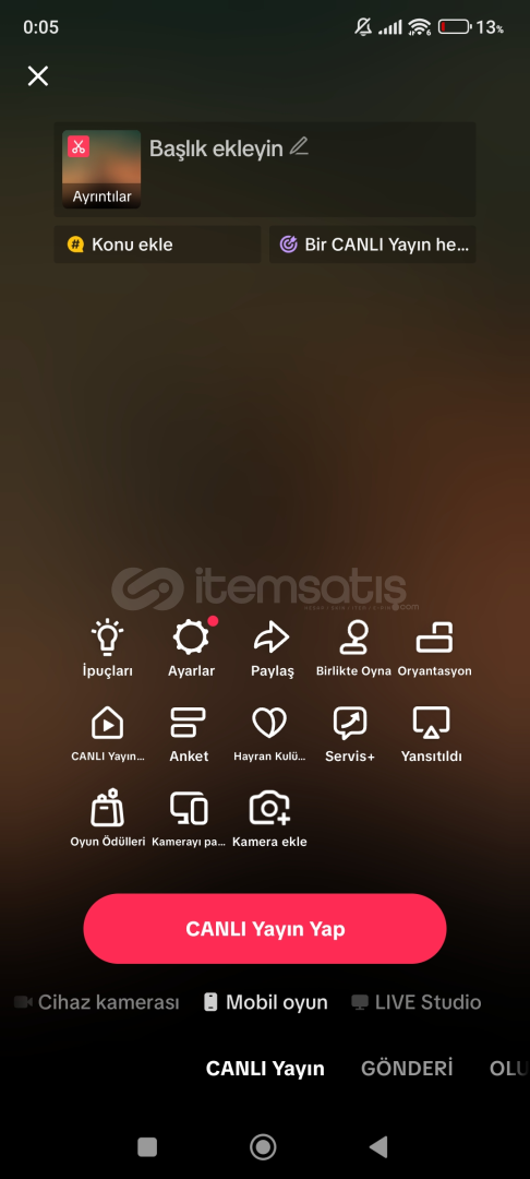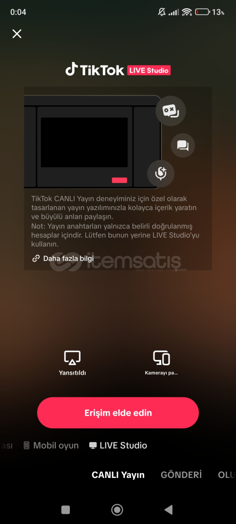 🎥Canlı yayın, sesli sohbet, cihaz kamerası, mobil oyun, live studio açık