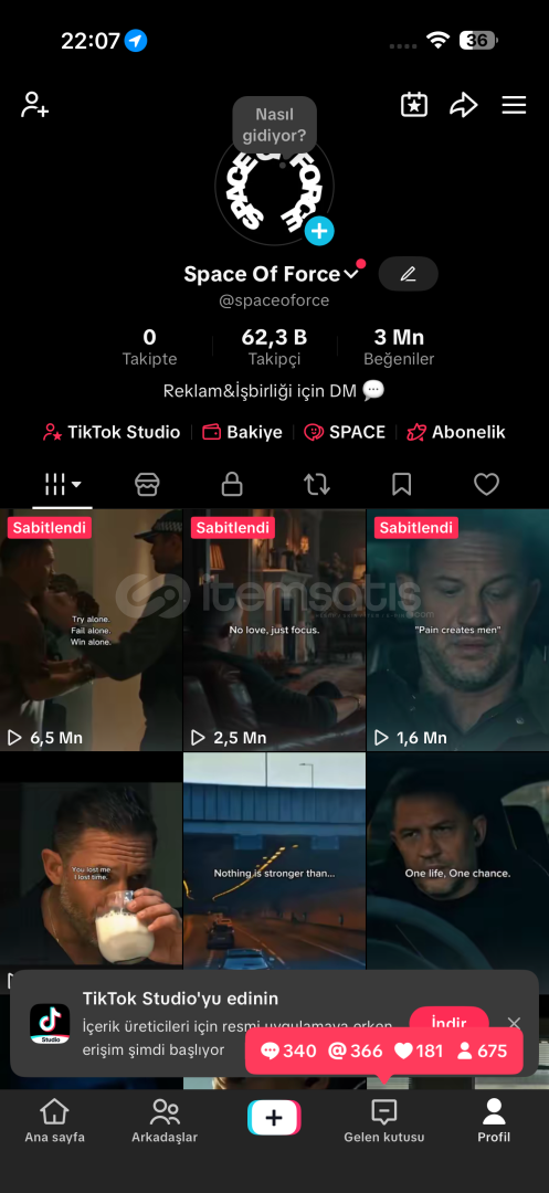✅ 62K FULL AKTİF KEŞFET AÇIK TİKTOK HESABI ✅Hesap sürekli keşfette günlük 100-200 arası takipçi geliyor . Hesabı satın aldığınızda dilediginiz içeriğe dönüştürüp kullanabilirsiniz. Mail adresi ve telefon değişebiliyor.. Direkt olarak satın alabilirsiniz teslimat sağlıyorum ..3M Toplam Beğeni ✅Live St...